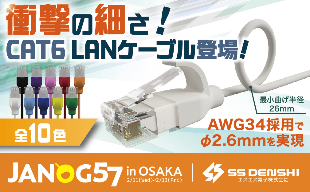 1. 極細LANケーブル(日本最細クラス 外径2.6mm) 今回の目玉として、日本最細クラスとなる外径2.6mmの極細LANケーブルを展示いたしました。