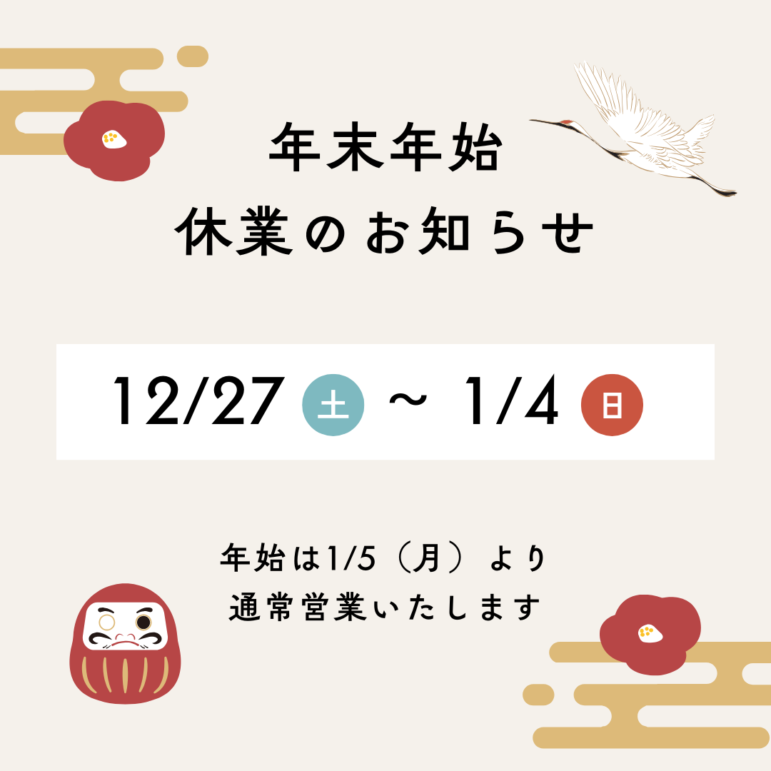年末年始休業のお知らせ